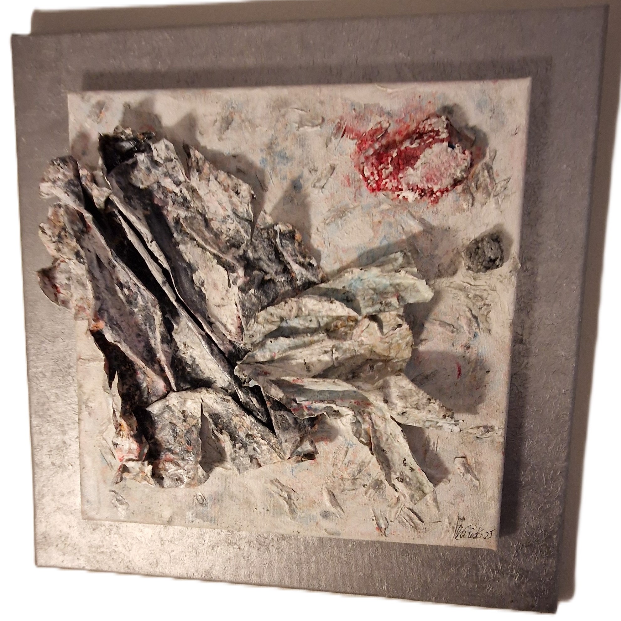 Work on Paper with acrylic paint and cardboard on canvas with wooden frame