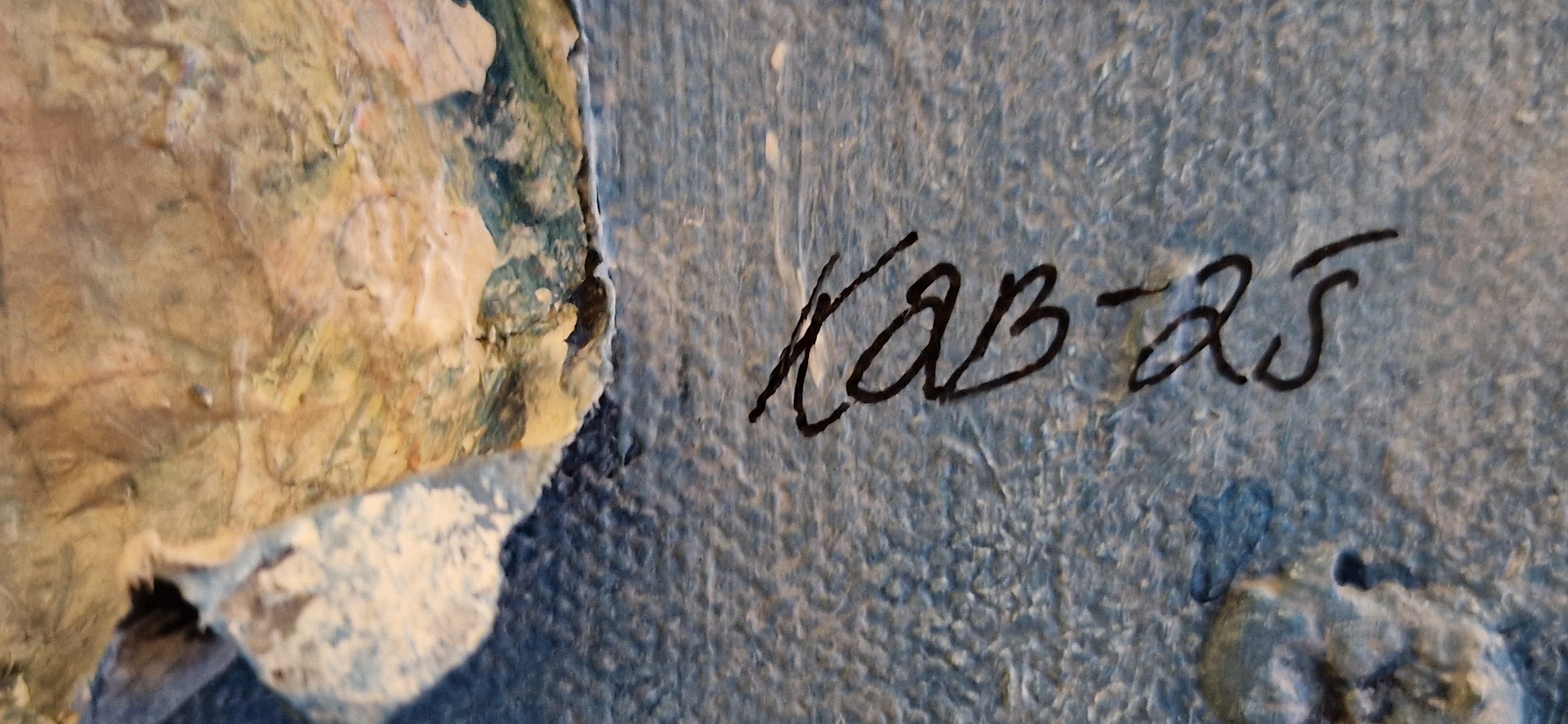 Combination of acrylic paint on reclaimed objects on canvas with a wooden frame